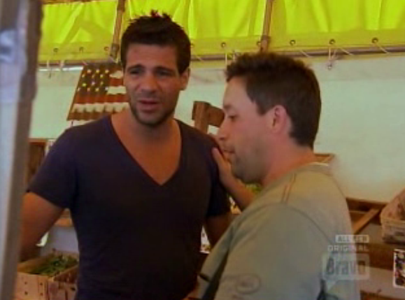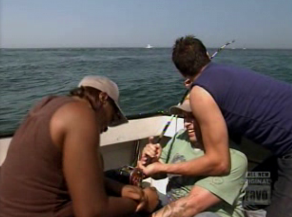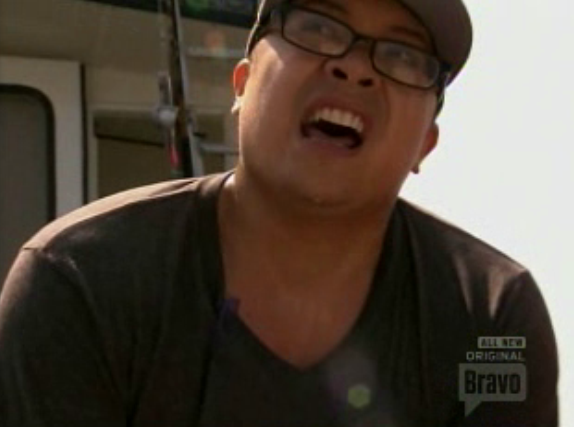 On the bottom are Tiffani (redhead), who made the same thing as Carla, but with less pumpernickel bagel croutons and more bluefish blood line; Jamie, whose goal seemed to be to make the most boring, blandest, most forgettable dish possible; and the trio of Professor Ricky Blaise, Fabio the Strange Italian Immigrant and Eminem Marcel. That threesome had the brilliant idea of only making one dish, and then agreed upon a concept that was wildly inappropriate for a beach setting and contained so many elements it could have been divided into six different plates (there might have been TWO kinds of foam). But, it was a strategic move as they assumed that even if their one dish was on the bottom the judges would have a hard time singling out just one member of the team. And, since it was only a double elimination challenge, they couldn’t vote out all three chefs. Numbers game! And, let’s face it, the judges weren’t going to excuse the Blaise (for fear of riots), and since his contribution in conceiving and executing the dish was roughly equal to Marcel’s, Marcel couldn’t go home either. Fabio just agreed to their vision, and handled all the prep work. And, as we’ve learned many times from Jamie this season, the safest bet to advance is to not cook at all, at least be able to defer responsibility for a dish, so Fabio was secure. Of course, Jamie refers to their decision to cook a single dish as a “cop-out.” Takes one to know one!