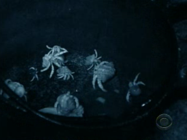 – Crab count: 2* more! 8 on the season (*we’re counting this shot of numerous crabs as one, as are any repeat shots of the same crab within the same scene later on. Distinct crab appearances only!)