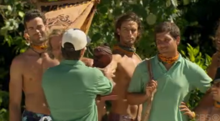 Colton, on the other hand, is not enjoying the state of things at Big Mike’s Place as much. Sure, there’s a newly won tarp (for being better at untying knots), some expertly weaved palms fronds (thanks, ladies!) and a Kat-free fire, but, still, Colton feels left out, like he’s not one of the men (newsflash, Colton: it’s not because you’re gay, it’s because you’re fucking terrible). So Colton runs off to the Salami Tribe and asks if he can hang out with them, because, well, he has no place else to go.