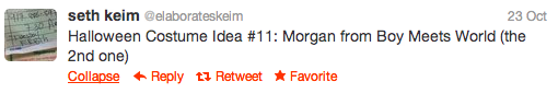 [Also, we can’t help but notice that it was only two weeks ago that we suggested a Morgan Matthews Halloween costume and now there’s talk of a Boy Meets World spin-off focusing on a female protagonist. Coincidence? Probably.
