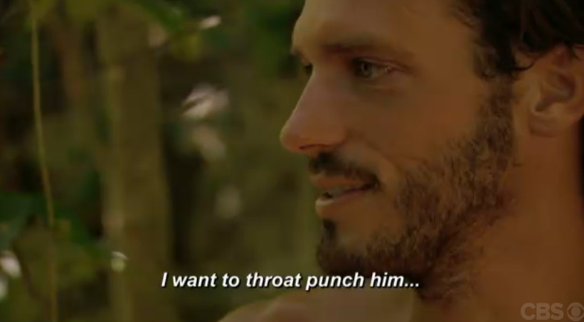 Speaking of copping from Boston Bob’s notes, Fillip has been talking all season about pretending to be Boston Rob, and now he’s sharing that advice with the members of alliance. But, we have to admit, while Rob was a superb player, we’re not sure how acting like this gets anyone ahead in this game: