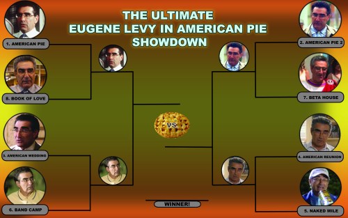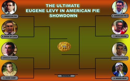 The Final Four in the Ultimate Eugene Levy in American Pie Showdown is set! Following an explosive, dramatic, electric opening round we’re left with Jim’s Dad in American Pie, Jim’s Dad in American Pie 2, Jim’s Dad in American Reunion (a controversial win over Jim’s Dad in American Pie: The Naked Mile), and, in a stunning upset, Jim’s Dad in American Pie: Band Camp. Can the number six seed continue its cinderella run and shock the world by taking down the original Jim’s Dad? Will the older, wiser Jim’s Dad in American Reunion be able to overcome his younger, more agile, less gray self? The only thing that we know for sure is that when it comes to Eugene Levy as Jim’s Dad tournaments anything can happen.