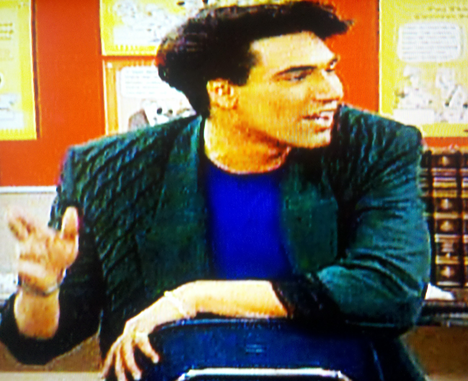 16:50: Mrs. Culpepper, the blind teacher. Mrs. Simpson, the deaf teacher, is evidently on leave. They should rename the school “Bayside High School for Disabled Teachers.” Can’t wait for the Season 5 episode with Mr. Johansson, the albino biology teacher who can’t smell.