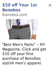 If we’re getting $50 off our first pair of Bonobos (great name, guys), then we have to imagine that the final cost would be “they owe us $10,” right? Seriously, how expensive could a pair of pants called “Bonobos” be?